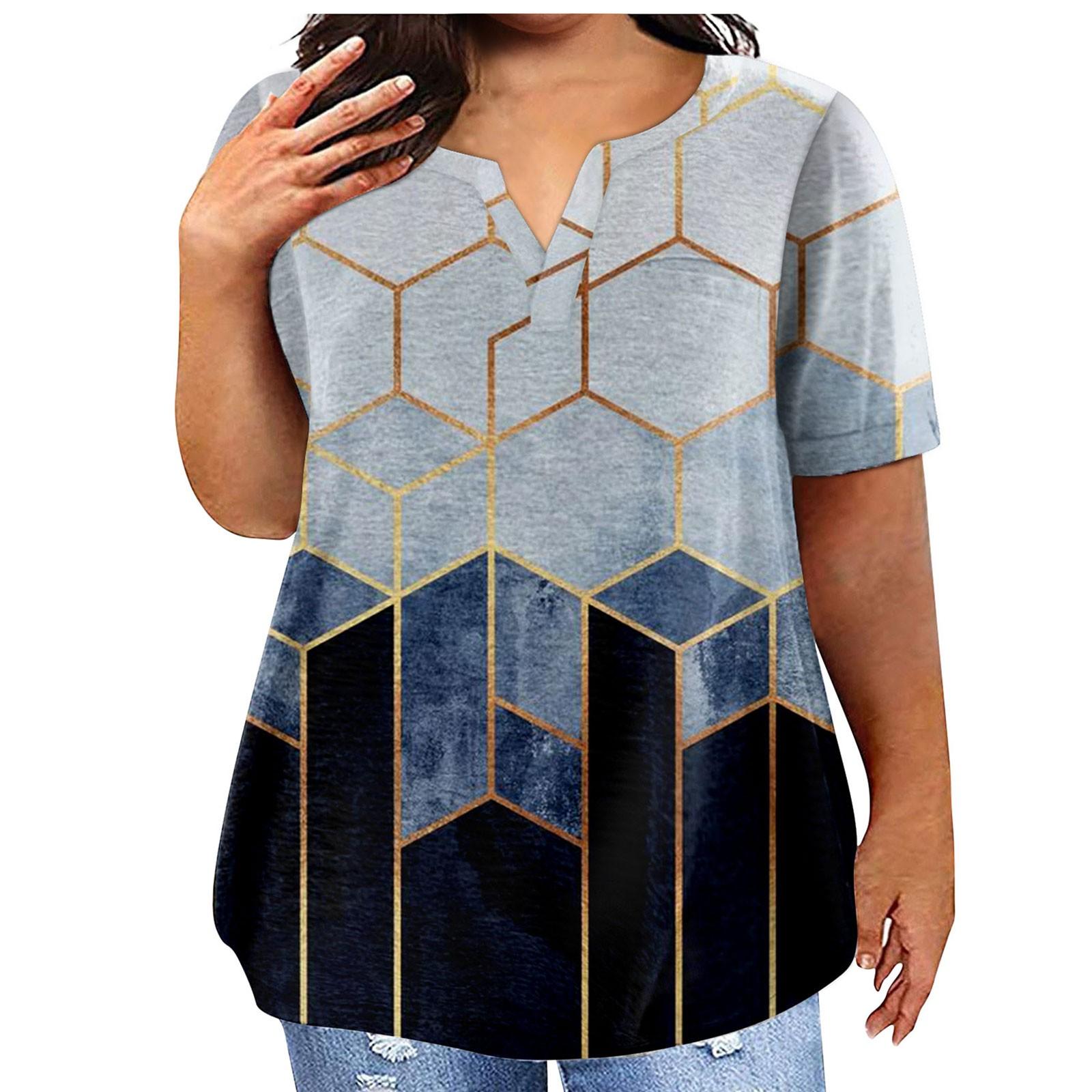 Модная женская повседневная футболка больших размеров с коротким рукавом и круглым вырезом в богемном стиле с карманами XXL тёмно-синий