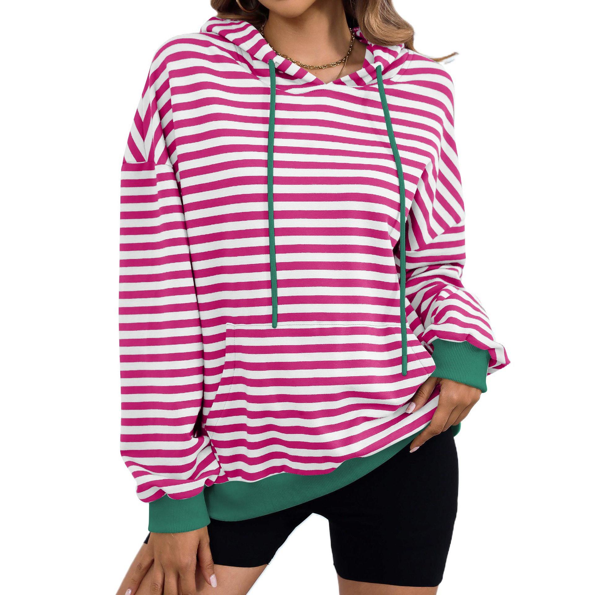Модная женская полосатая толстовка с капюшоном, свободная повседневная толстовка с капюшоном XL