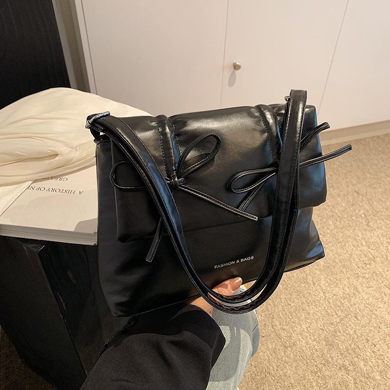 Модная женская сумка в иностранном стиле с бантом, маленькая сумка под мышкой 2024 года, новый темперамент, простая однотонная сумка-мессенджер, маленькая квадратная сумка чёрный