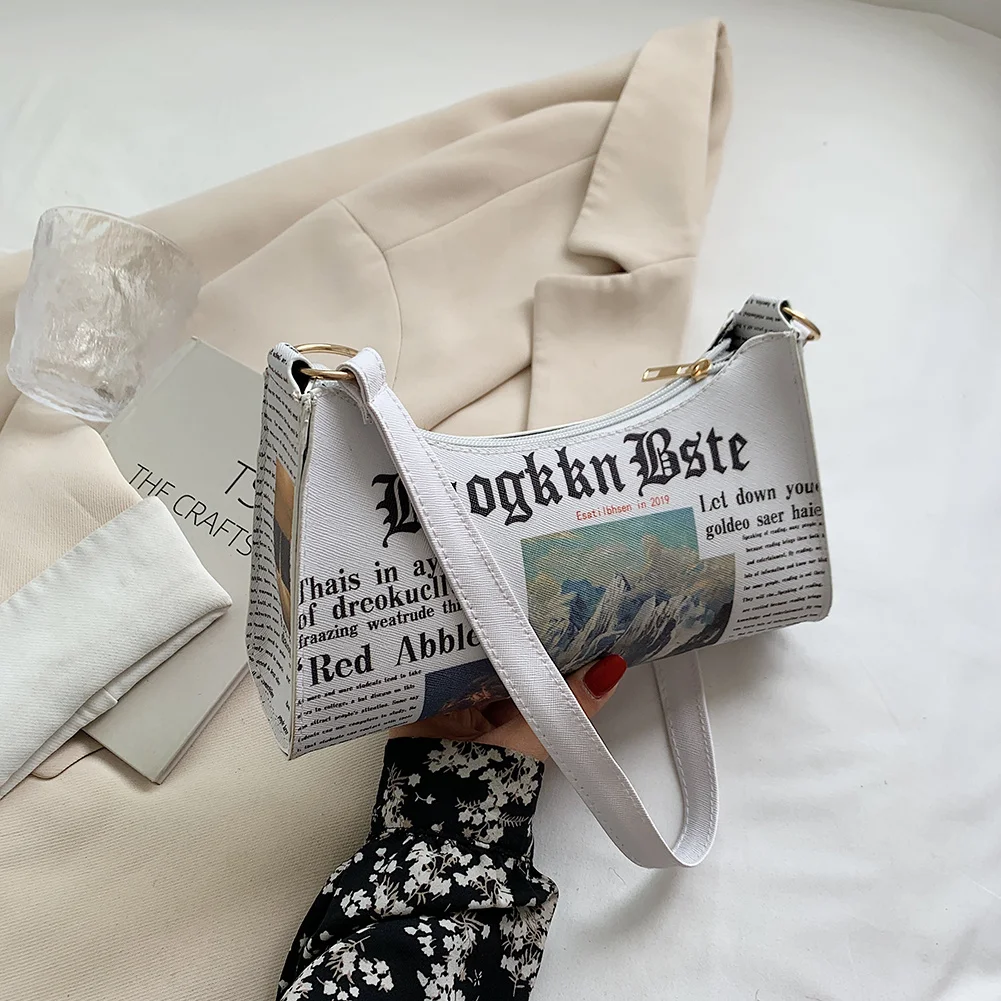 Модная женская сумка из искусственной кожи с принтом газеты, Индивидуальная сумка через плечо, повседневная женская маленькая сумочка, сумки, новинка 2021