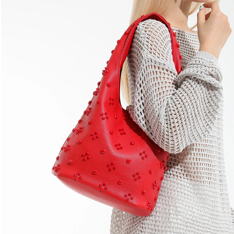Модная женская сумка на плечо с заклепками, большая вместительная легкая роскошная сумка для подмышек, универсальная новая женская однотонная сумка-тоут из искусственной кожи