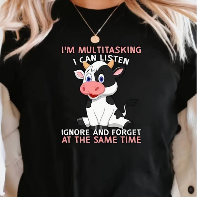 Модная женская футболка с милым принтом коровы, забавная повседневная футболка с короткими рукавами и круглым вырезом, летняя женская футболка 8XL темно-синий