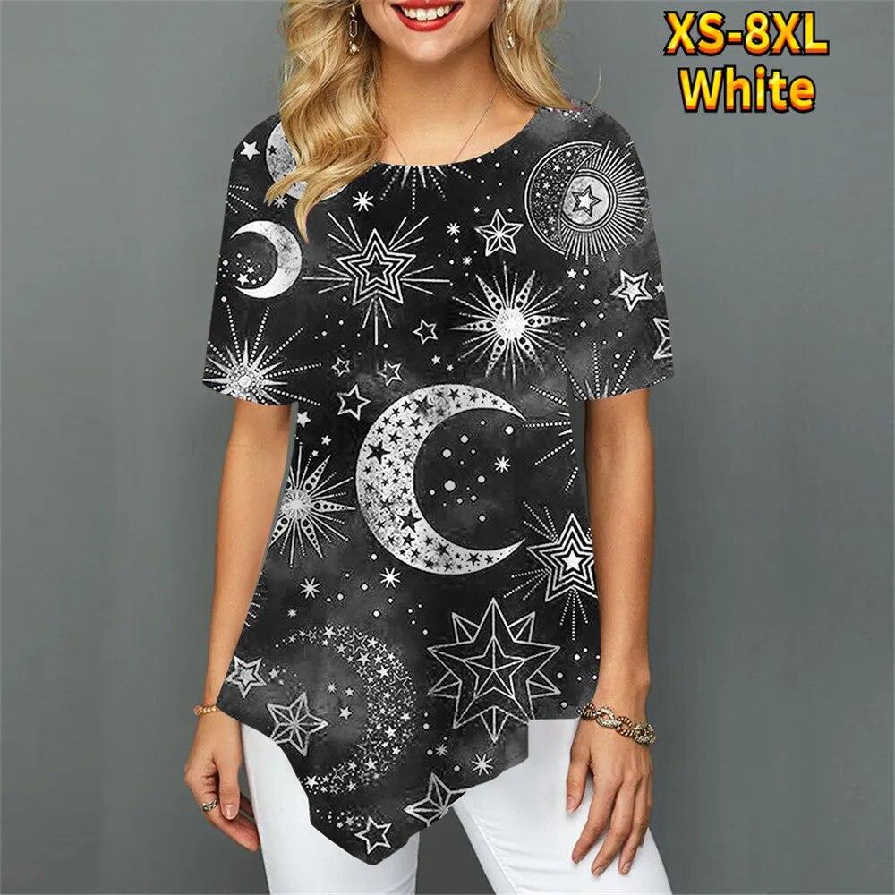 Модная женская футболка с нерегулярным подолом и принтом, трендовая тонкая легкая белая женская одежда с круглым вырезом и коротким рукавом, летние топы для отдыха, пуловер XXXL