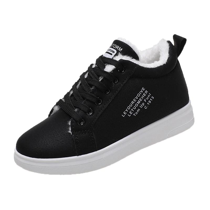 Модная зимняя женская обувь для отдыха на открытом воздухе, теплая меховая плюшевая женская повседневная обувь на шнуровке, модные розовые плоские кроссовки для ходьбы на платформе, зимние ботинки Mujer 40 чёрный