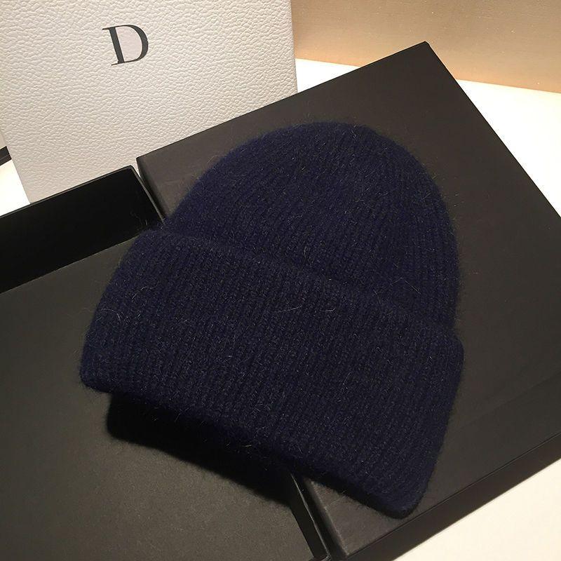 Модная зимняя шапка из ангоры для женщин, однотонная вязаная шапка из натурального кроличьего меха, шапка, женские теплые шапочки Skullies 56-58cm темно-синий