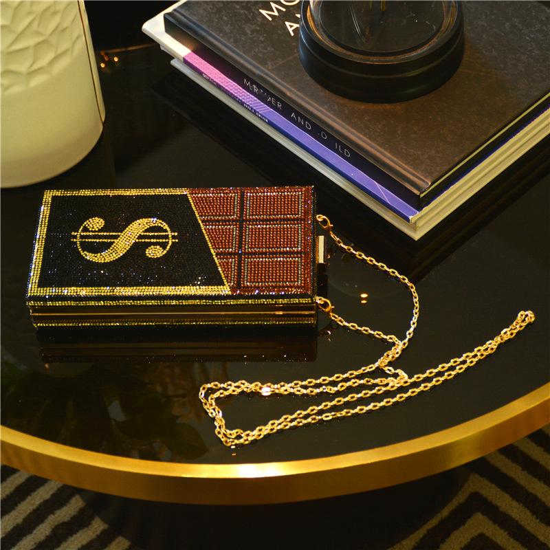 Модная индивидуальная сумка-мессенджер с бриллиантами, сумка для ужина, долларовая сумка, клатч, маленькая квадратная сумка 21cm*4cm*10.5cm коричневый