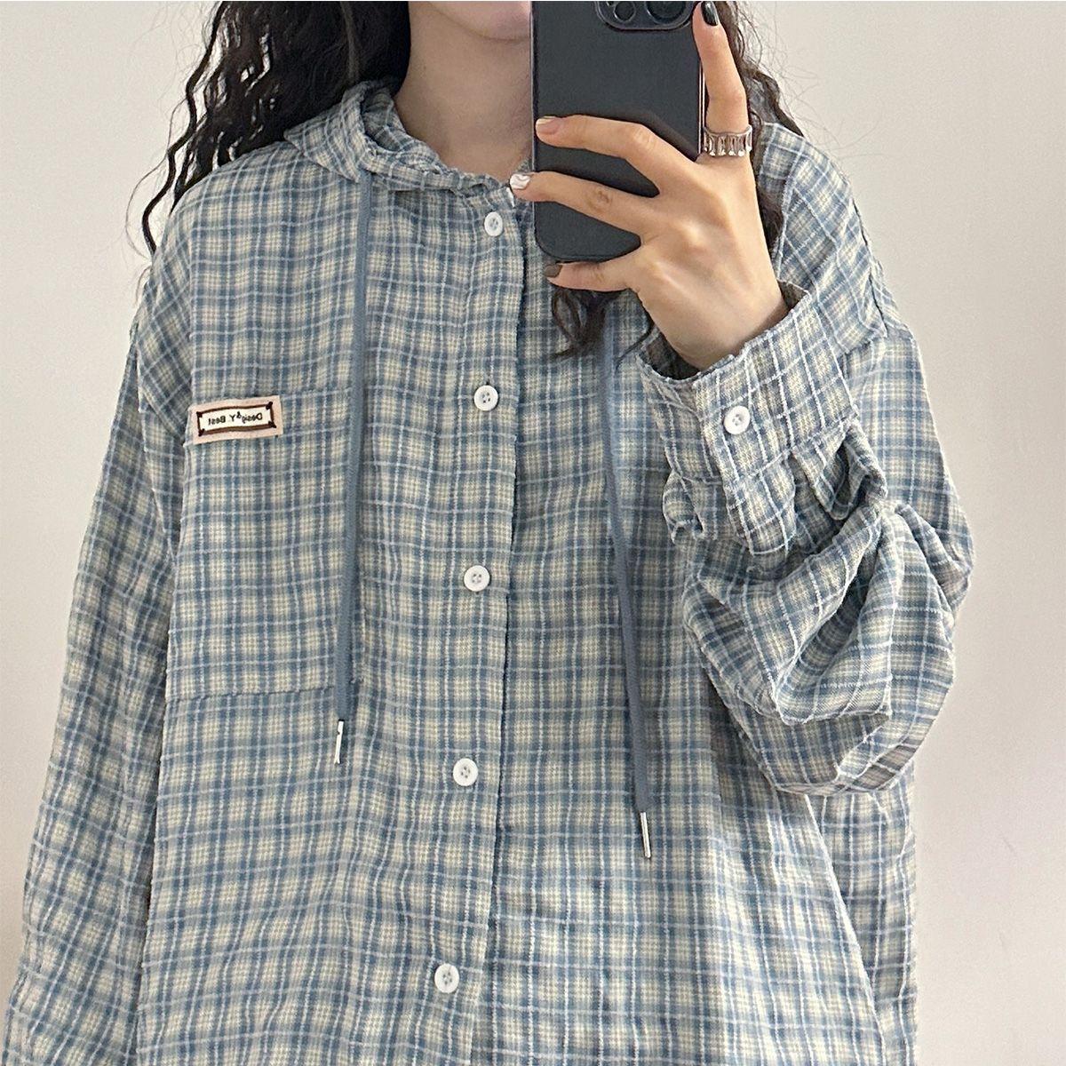 Модная клетчатая рубашка с капюшоном для женщин, весна-осень, свободный топ с длинными рукавами, корейская версия, модное и универсальное женское пальто XL