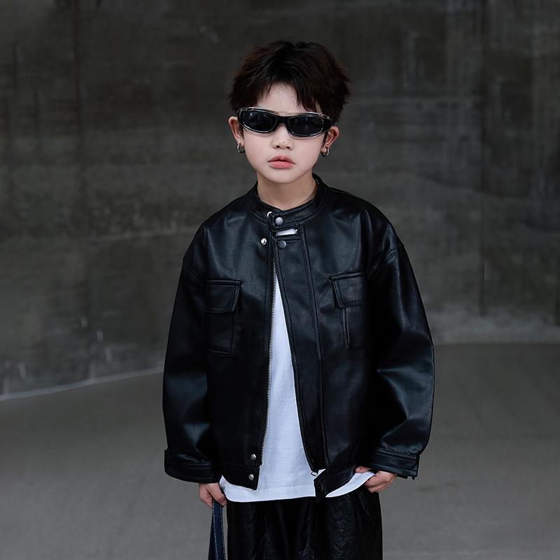 Модная кожаная мотоциклетная куртка для мальчиков на весну и осень 2025 года 160cm