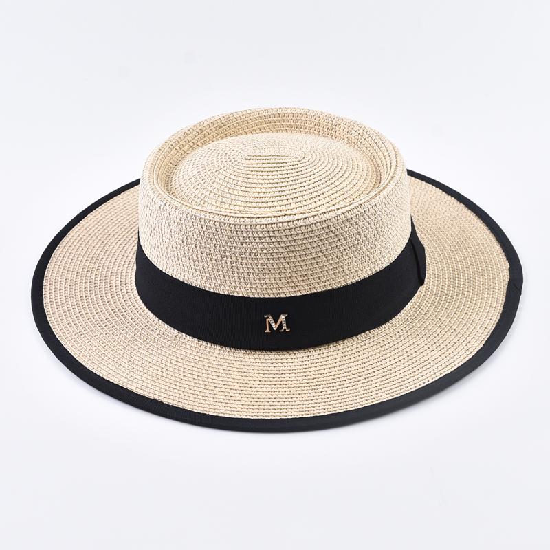 Модная летняя женская соломенная шляпа от солнца, женская пляжная шляпа с плоскими полями и лентой, дорожная кепка, женская шляпа One Size бежевый