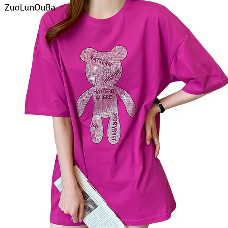 Модная летняя хлопковая розово-красная женская футболка, горячая Распродажа, в стиле Харадзюку, пикантные топы с надписью «Маленький Медве...