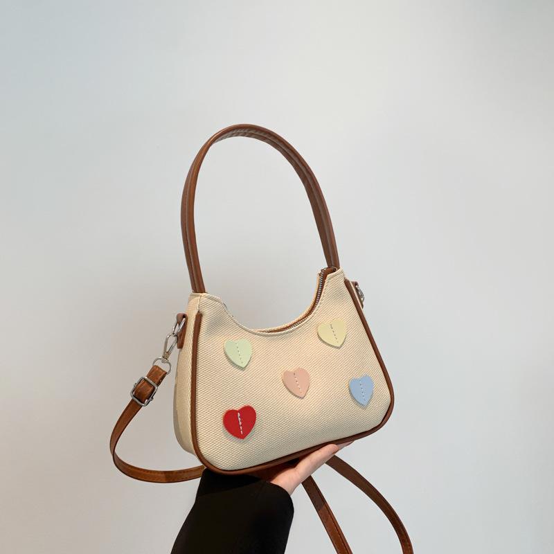 Модная маленькая свежая сумка подмышку 2025 осень новая высокая ценность персиковое сердце повседневная универсальная на плечо мессенджер коричневый