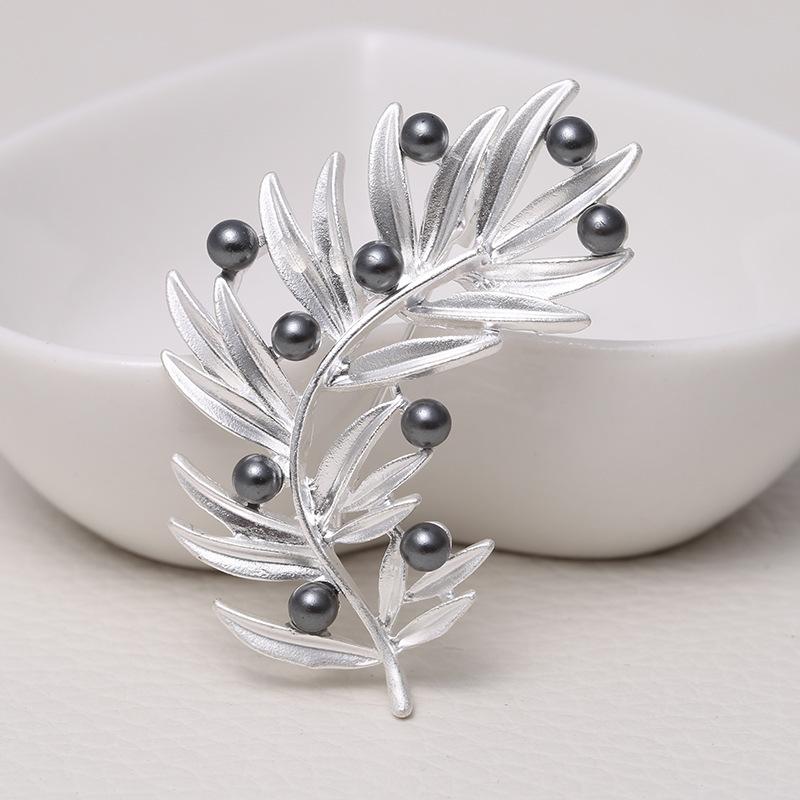 Модная матовая брошь в виде листа с жемчугом в стиле ретро, элегантный корсаж, аксессуары для костюма