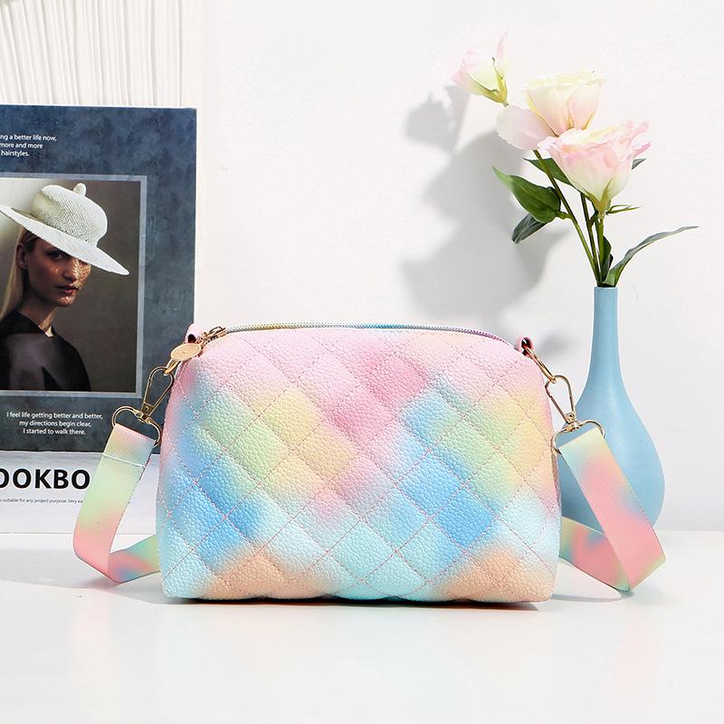 Модная минималистичная портативная женская сумка, универсальная маленькая квадратная сумка, красочная сумка через плечо с ромбовидной решеткой и вышивкой one size