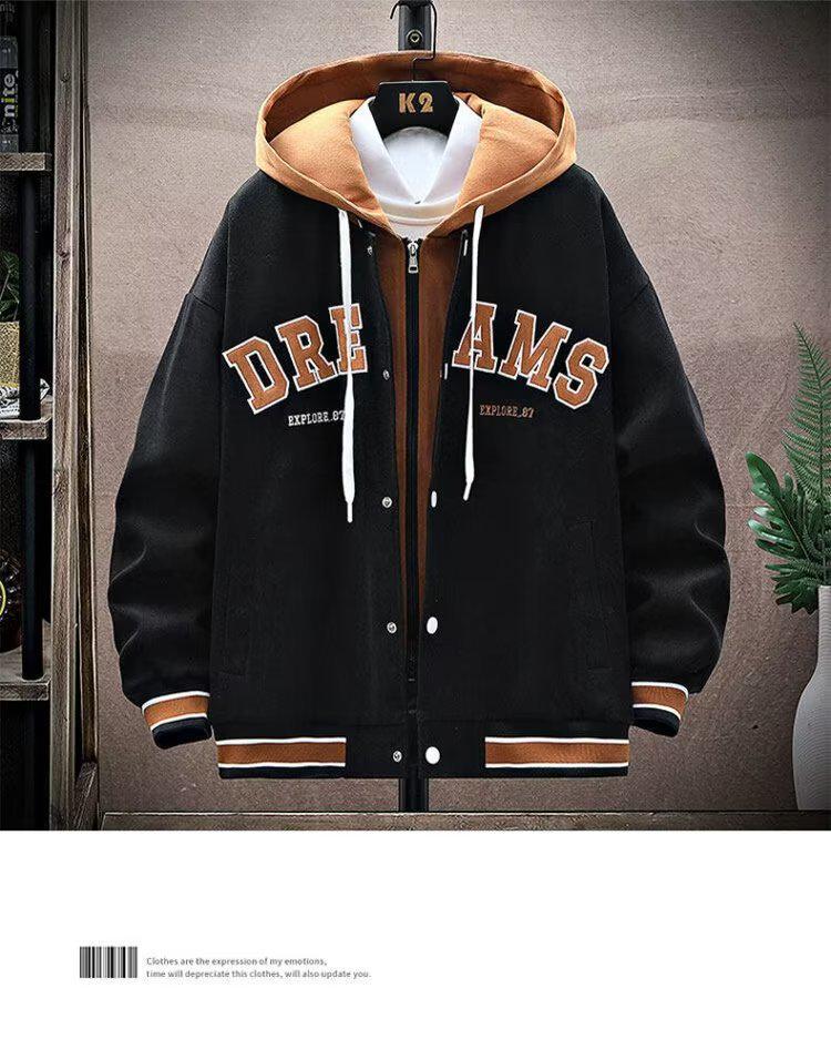 Мужская модная бейсбольная куртка из двух частей — молодежный весенне-осенний стиль для пар L чёрный