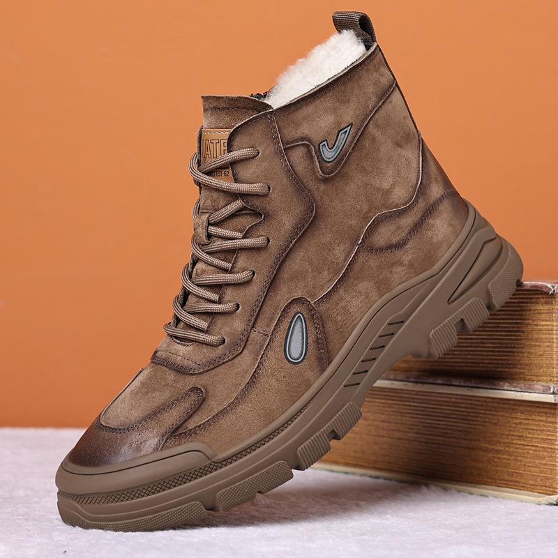 Модная мужская зимняя обувь, теплая, удобная, модная, из натуральной кожи, зимние сапоги, водонепроницаемые сапоги, мужские шерстяные, плюшевые, теплые сапоги 10 хаки