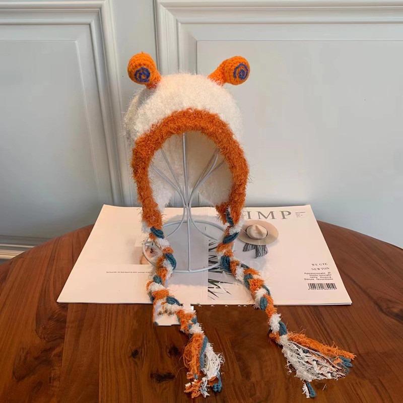 Модная необычная ручная работа, мультяшная милая улитка, плюшевые ушки, шерстяная шапка, женская зимняя теплая защитная шапка для ушей, осень и зима оранжевый