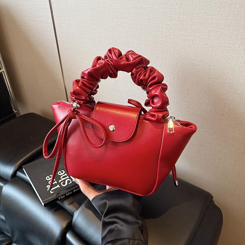 Модная нишевая плиссированная сумка-тоут женская новая летняя универсальная на плечо подмышку маленькая сумка красный