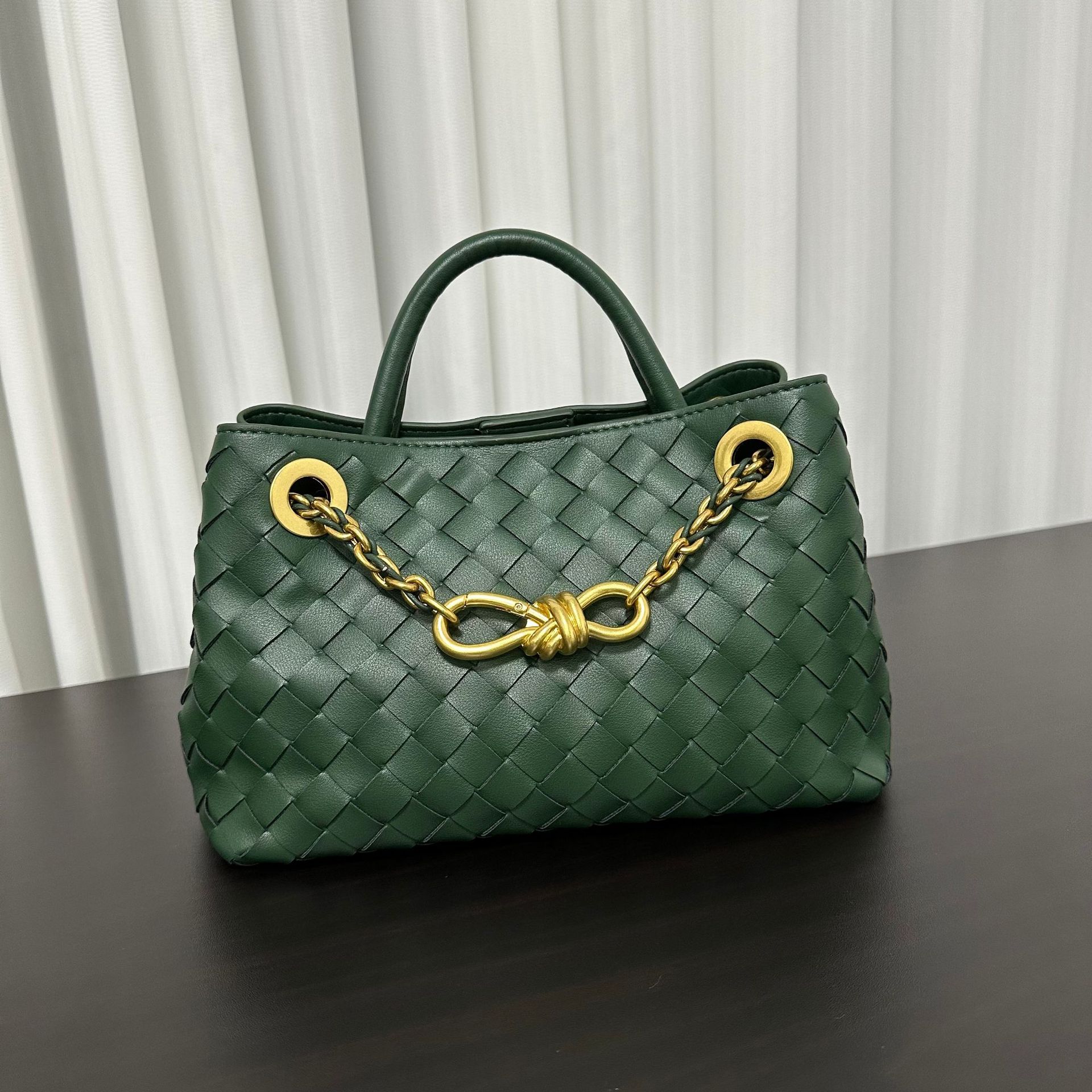 Модная новая вязаная сумка большой емкости, универсальная сумка-тоут из кожи с цепочкой, повседневная сумка на одно плечо 32x24x12cm армия зеленый