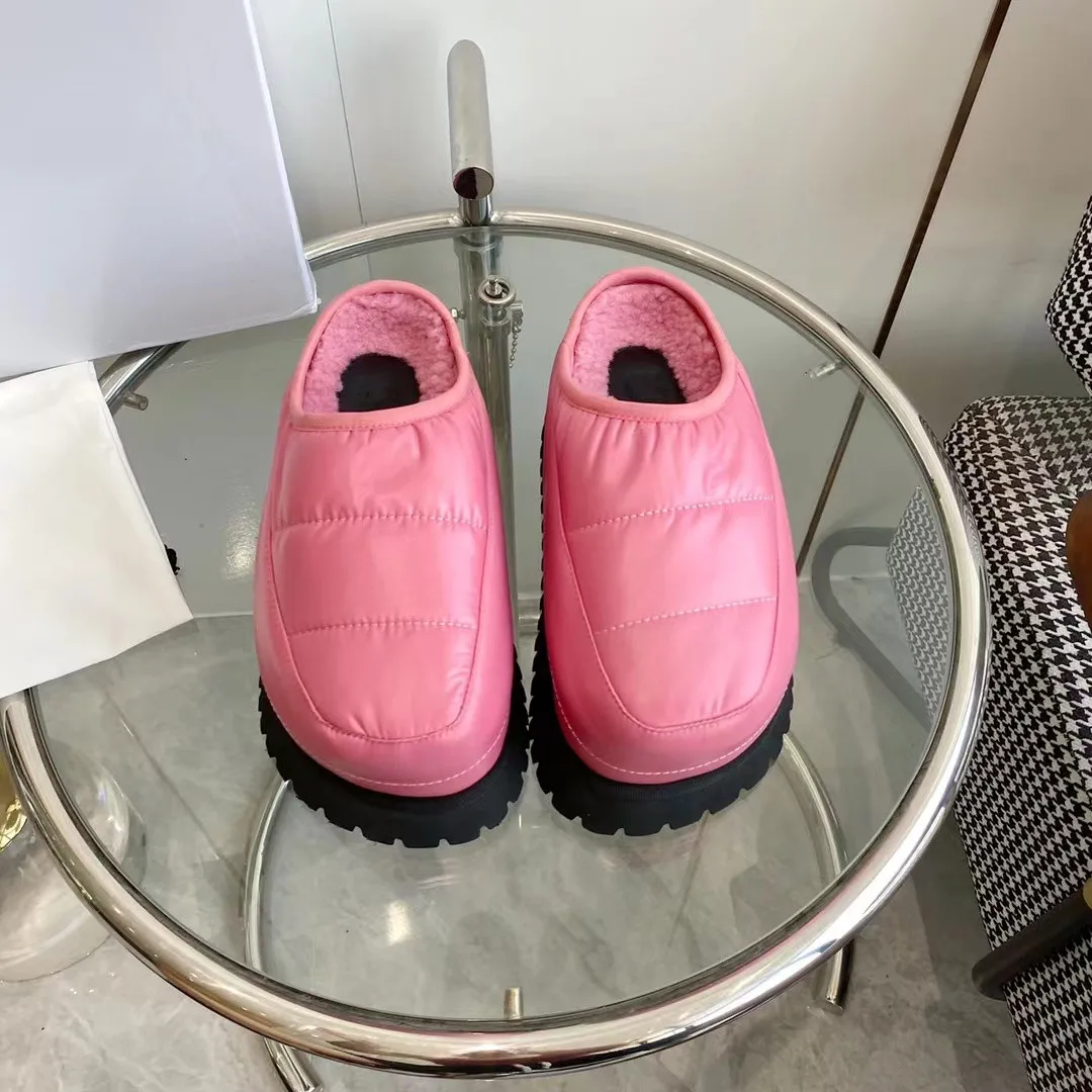 Модная новейшая Нейлоновая пуховая ткань, женские толстые тапочки черного и розового цветов