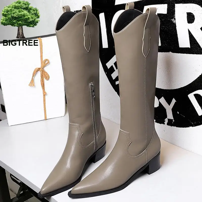 Модная обувь, женские сапоги до колена, ретро рыцарские сапоги с острым носком, ковбойские сапоги в западном стиле, новые женские высокие сапоги на осень и зиму 2023
