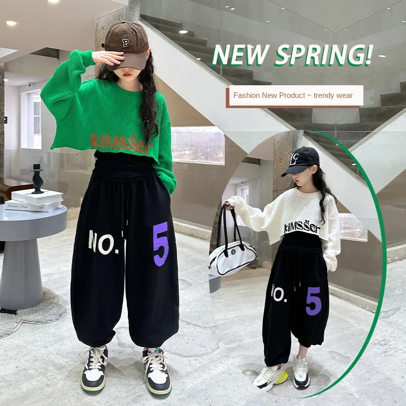 Модная одежда для девочек, Весенний костюм, новинка 2023, модная детская танцевальная одежда в стиле хип-хоп для детей