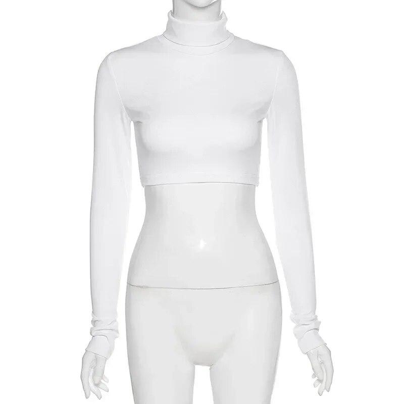 Модная однотонная укороченная футболка с воротником, женская осенняя эластичная повседневная облегающая базовая майка, женская уличная одежда, элегантная футболка Tess 30385 L белый