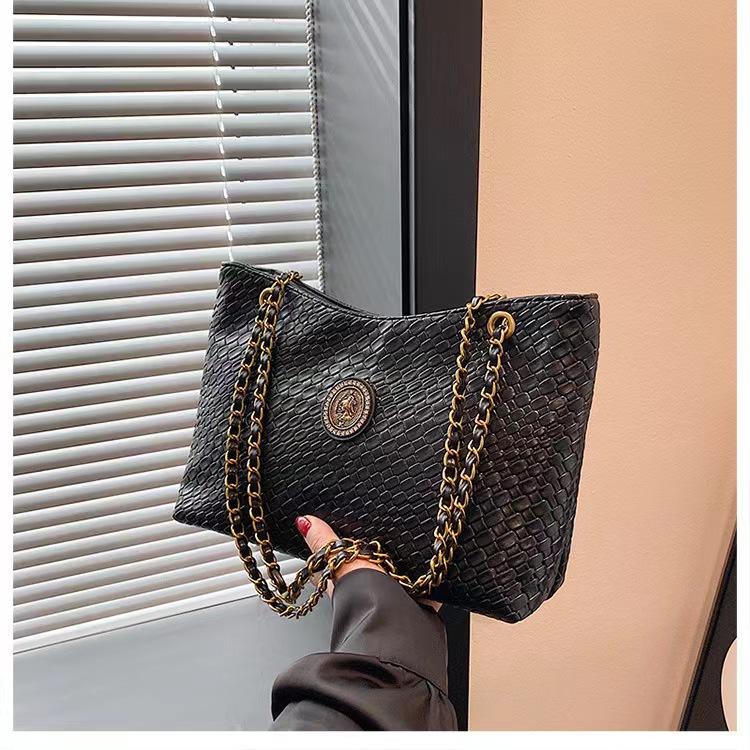 Модная плетеная мягкая кожаная сумка большой емкости через плечо с косой цепочкой, женская сумка чёрный
