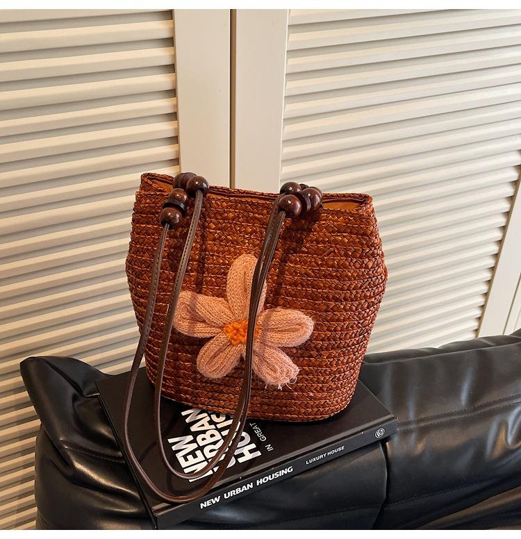 Модная плетеная сумка из соломы большой вместимости, большая сумка 2025, новая пляжная сумка, сумка-корзина для овощей, универсальное плетение с цветами коричневый
