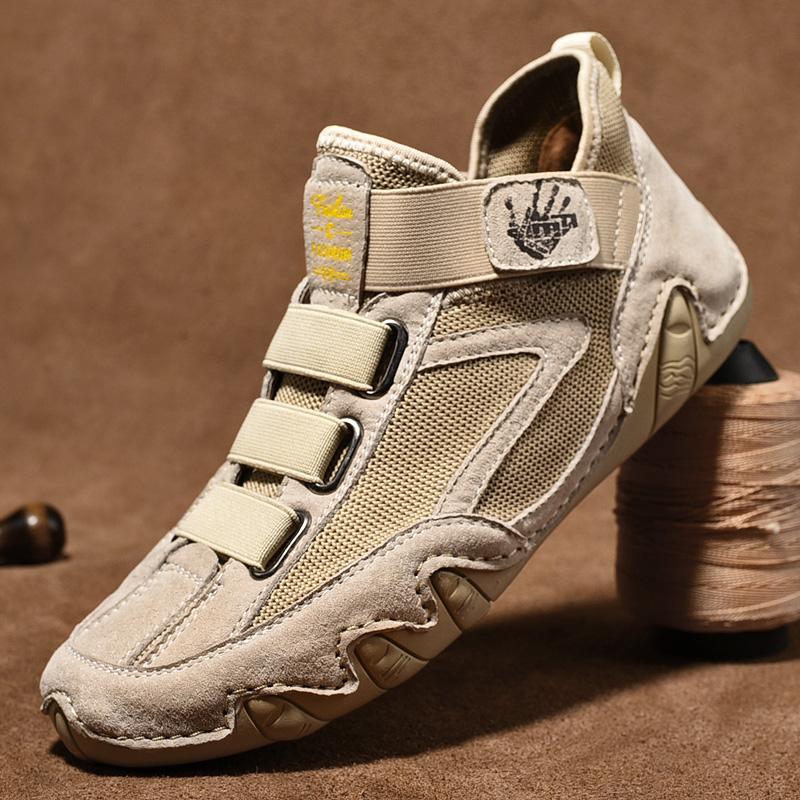 Модная повседневная кожаная обувь, мужские лоферы, удобная обувь из коровьей замши, мужская дышащая обувь на плоской подошве, мужская обувь для вождения 45 бежевый