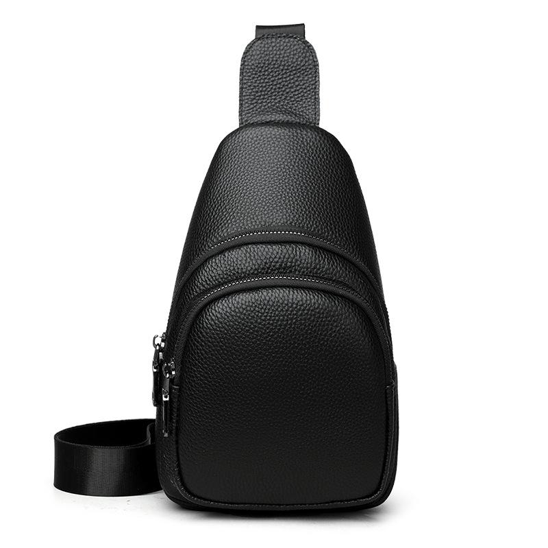 Модная и повседневная мужская кожаная сумка через плечо из коровьей кожи для ношения на груди чёрный