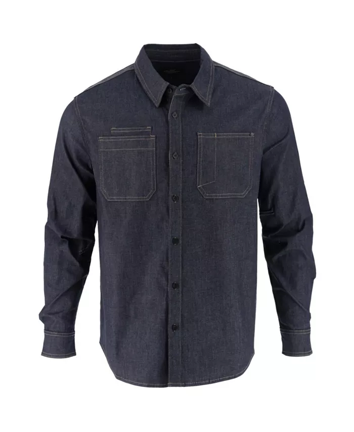 Мужская винтажная рубашка на пуговицах с длинным рукавом из эластичного денима Thorogood, синий