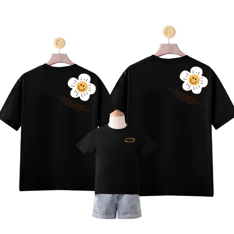 Модная семейная хлопковая футболка для отца, сына, дочери, матери, подходящая одежда, летняя одежда для взрослых и детей, цветочная ткань