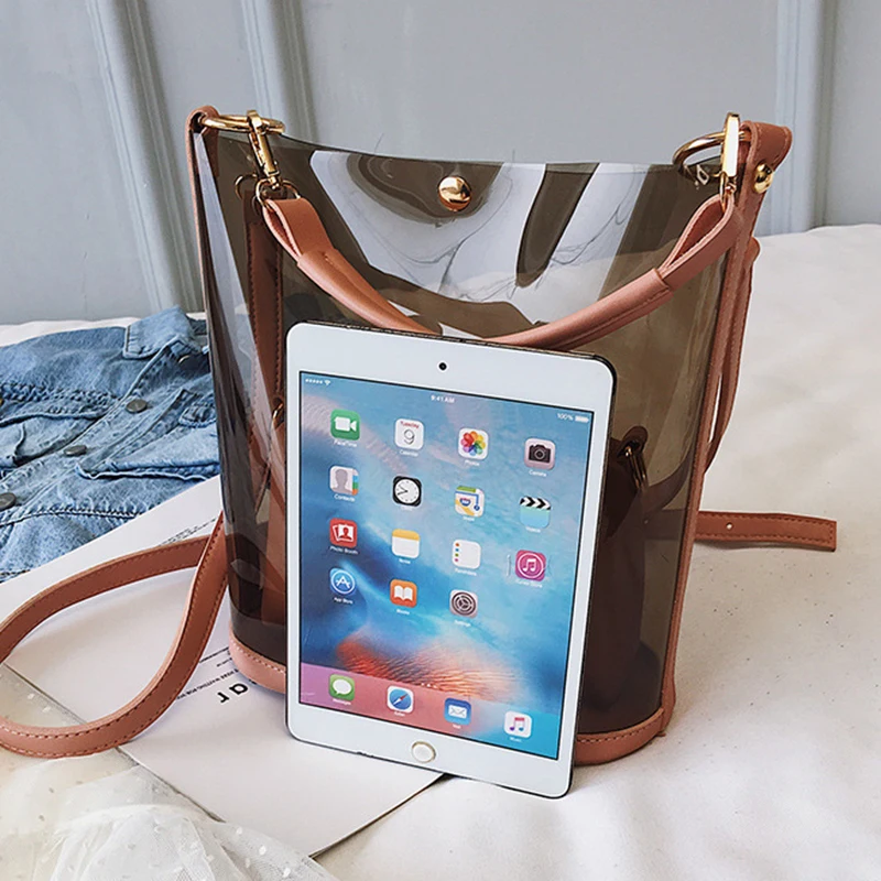 Модная сумка-мешок, женская прозрачная сумка, женская прозрачная сумка на плечо, летняя пляжная сумка-желе, сумка через плечо из ПВХ, женская...