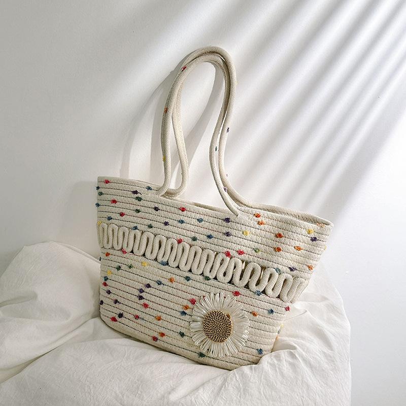Модная сумка-тоут большой вместимости с цветочным декором, женская популярная новая плетеная сумка-подмышка на плечо, пляжная сумка 2025