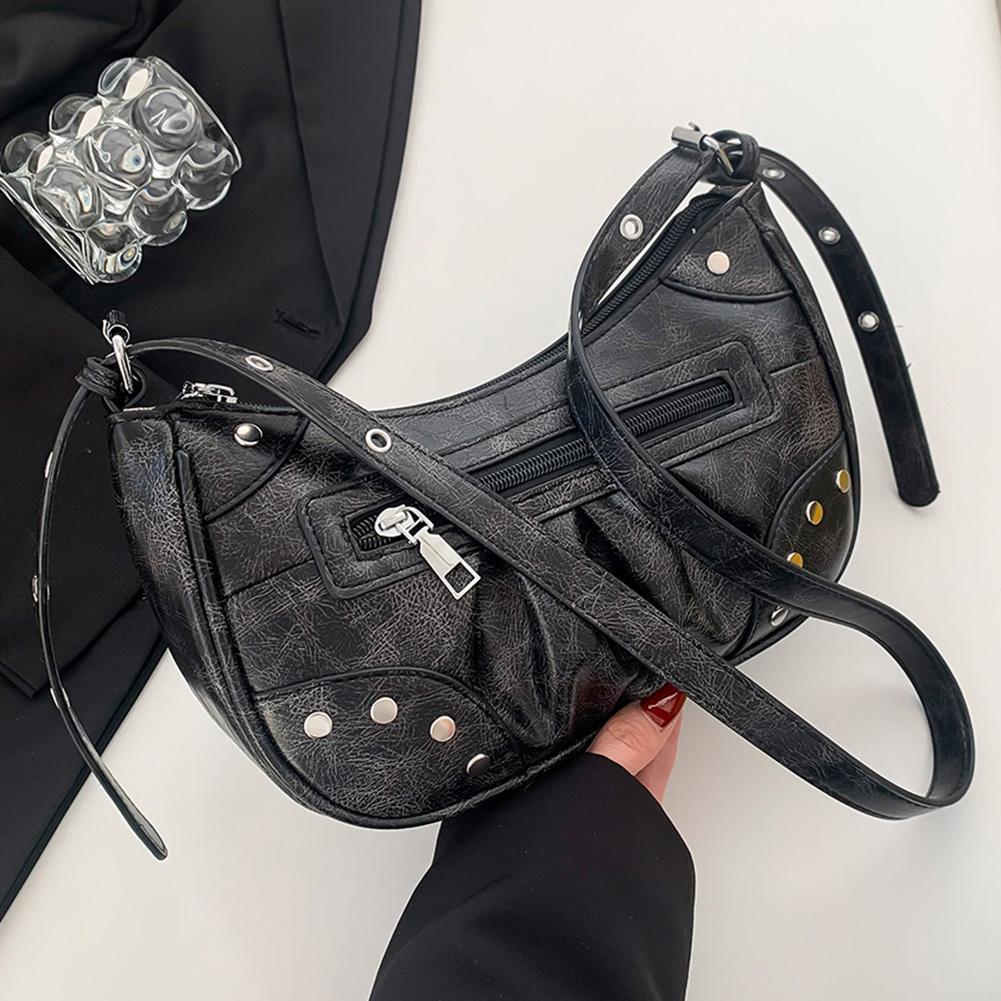 Модная сумка-хобо с заклепками в стиле панк, модная сумка на молнии, сумка подмышки, повседневный кошелек для женщин и девочек чёрный