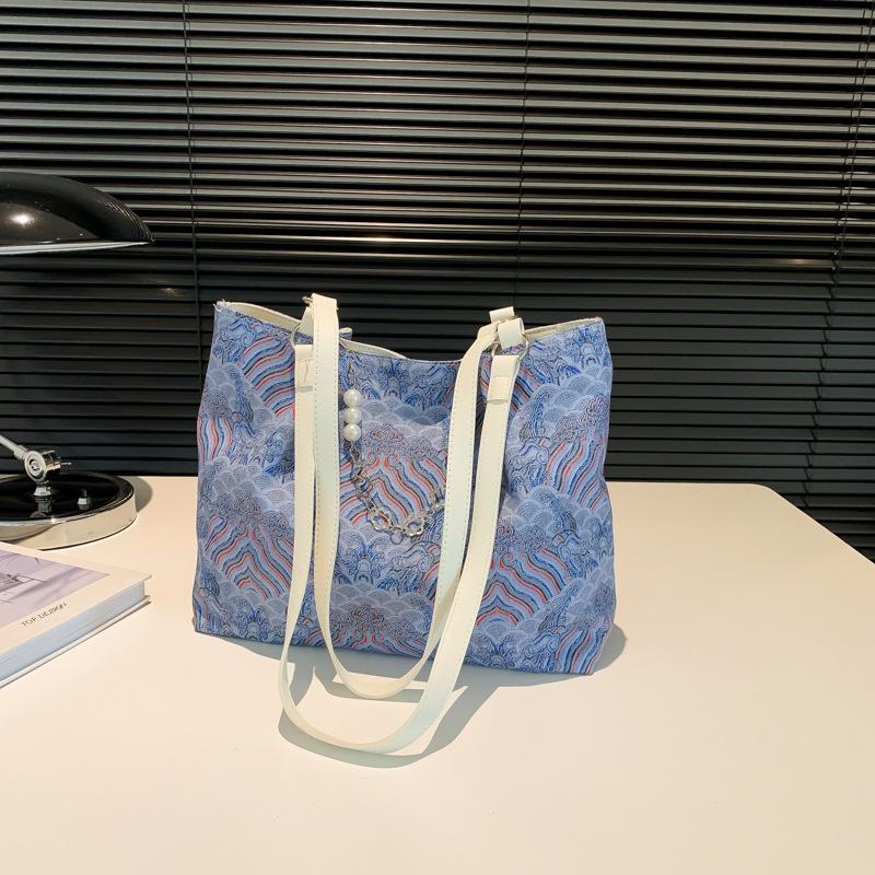 Модная тенденция женская сумка через плечо 2024 года, новая сумка в литературном национальном стиле, женская сумка-тоут, сумка-мессенджер на цепочке синий