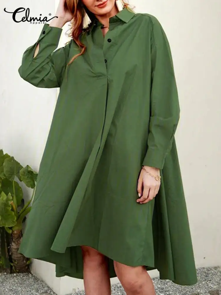 Модное Вечернее Платье-миди 2022 Celmia, женское повседневное свободное платье, женское осеннее платье-рубашка, винтажное платье с длинным рукав...