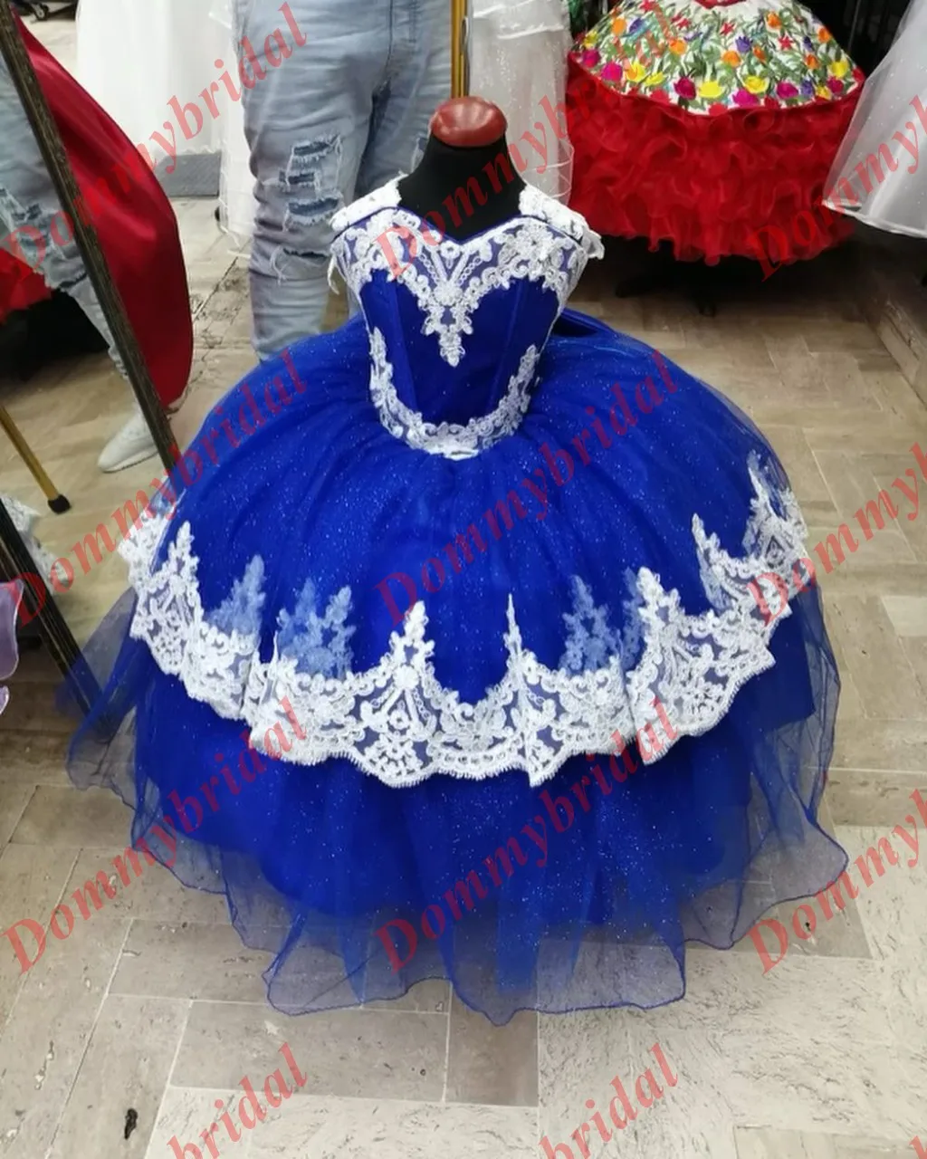 Модное белое и ярко-синее бальное платье для малышей, маленьких девочек, пышное платье для выпускного вечера, платье для девочек с драгоценными камнями, Цветочное платье для свадебной вечеринки