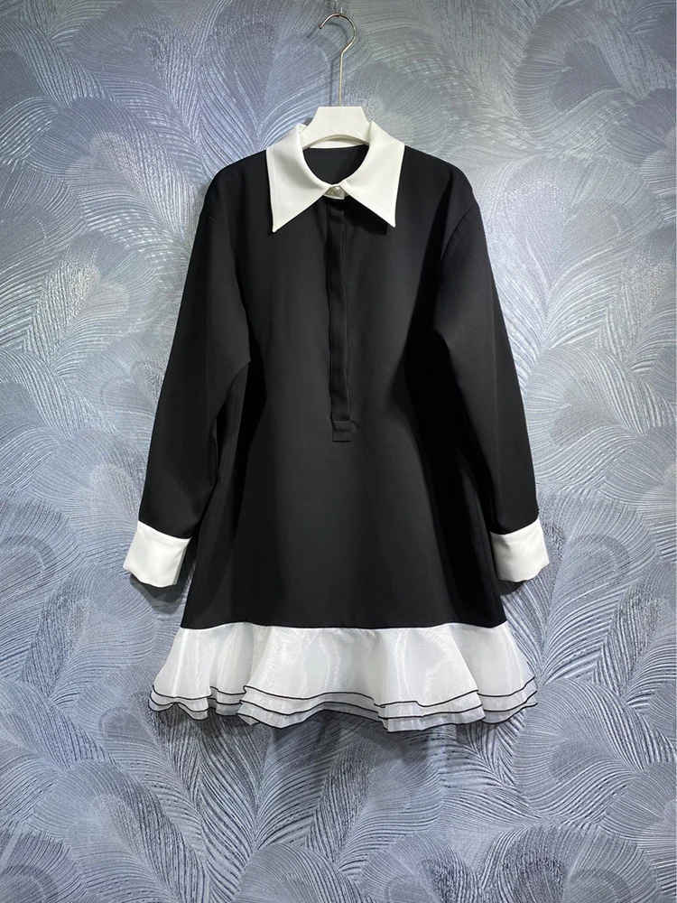 Модное весеннее женское милое платье с отложным воротником и длинным рукавом, уличное мини-платье в стиле пэчворк