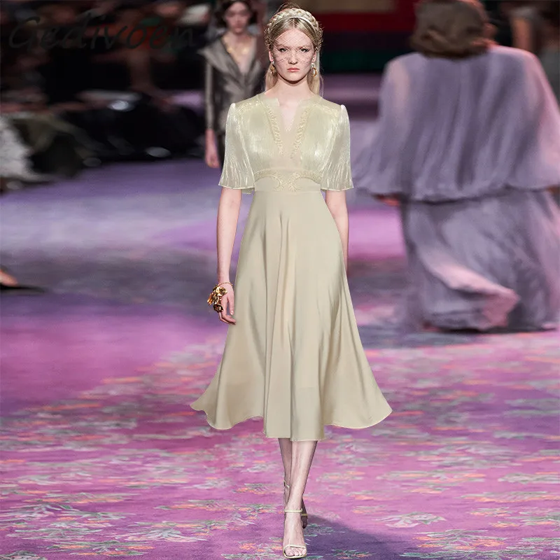 Модное дизайнерское летнее винтажное платье Gedivoen, женское облегающее платье средней длины с расклешенными рукавами, оборками и бисером