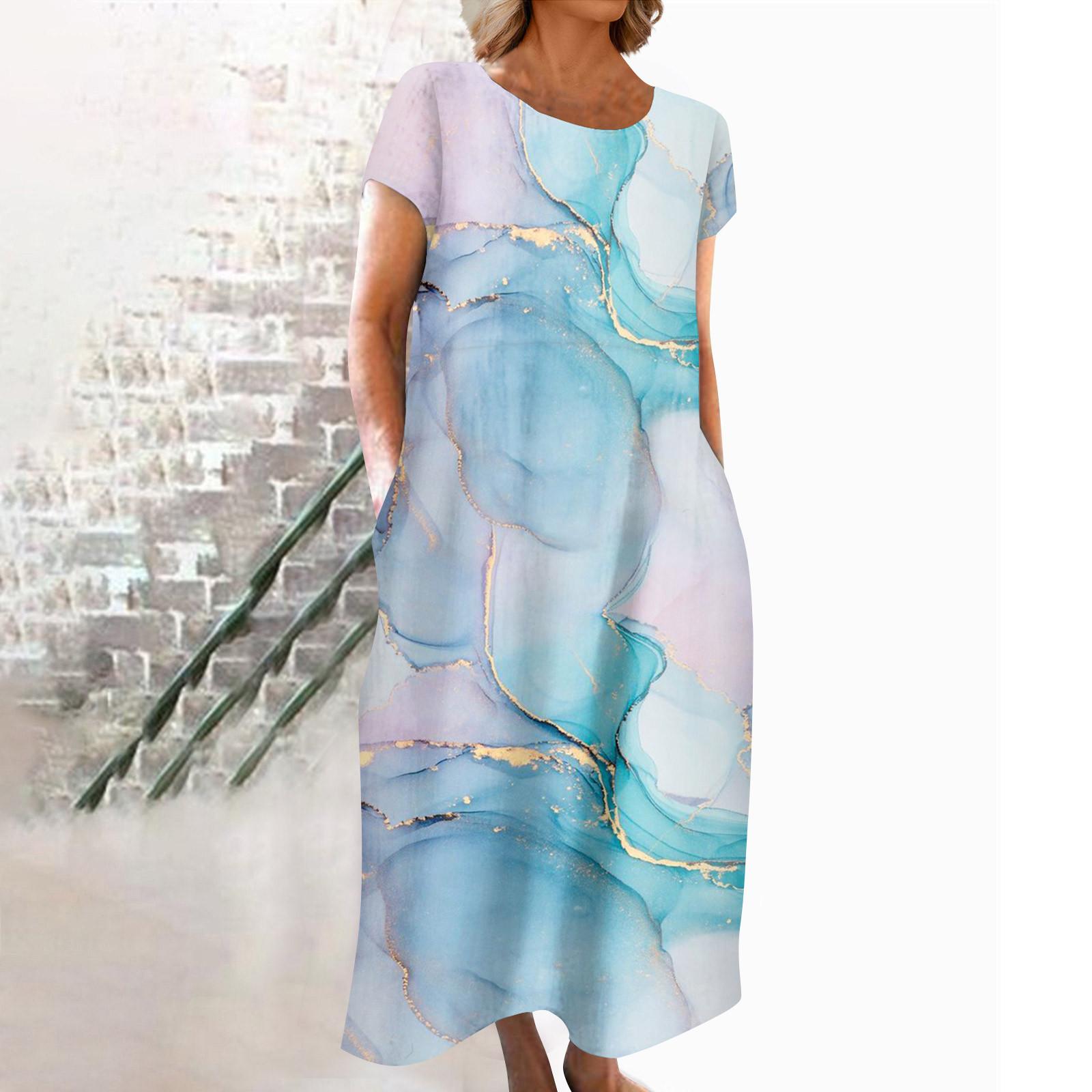 Модное женское летнее платье с круглым вырезом и повседневным модным пуловером с принтом и коротким рукавом XXL