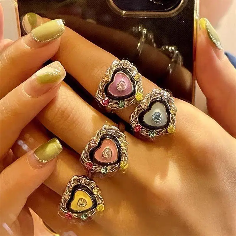 Модное и минималистичное регулируемое женское кольцо в стиле Ins с цветным цирконием и сердцем, ювелирные изделия