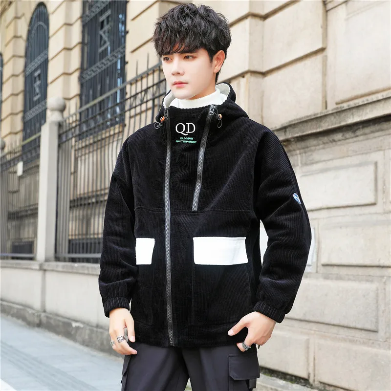 Модное пальто с капюшоном, с цветными блоками, Зимняя Мужская бархатная Толстая теплая хлопковая одежда, Молодежные мужские свободные куртки с подкладкой, верхняя одежда