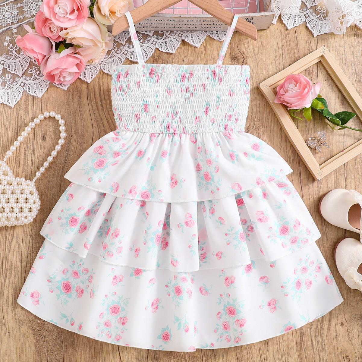 Модное платье для девочек Летнее детское платье с цветочным принтом Милое платье принцессы 170cm розовый
