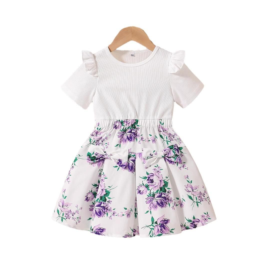 Модное платье для девочек. Летнее детское платье принцессы с милым бантом и цветочным узором. 130cm