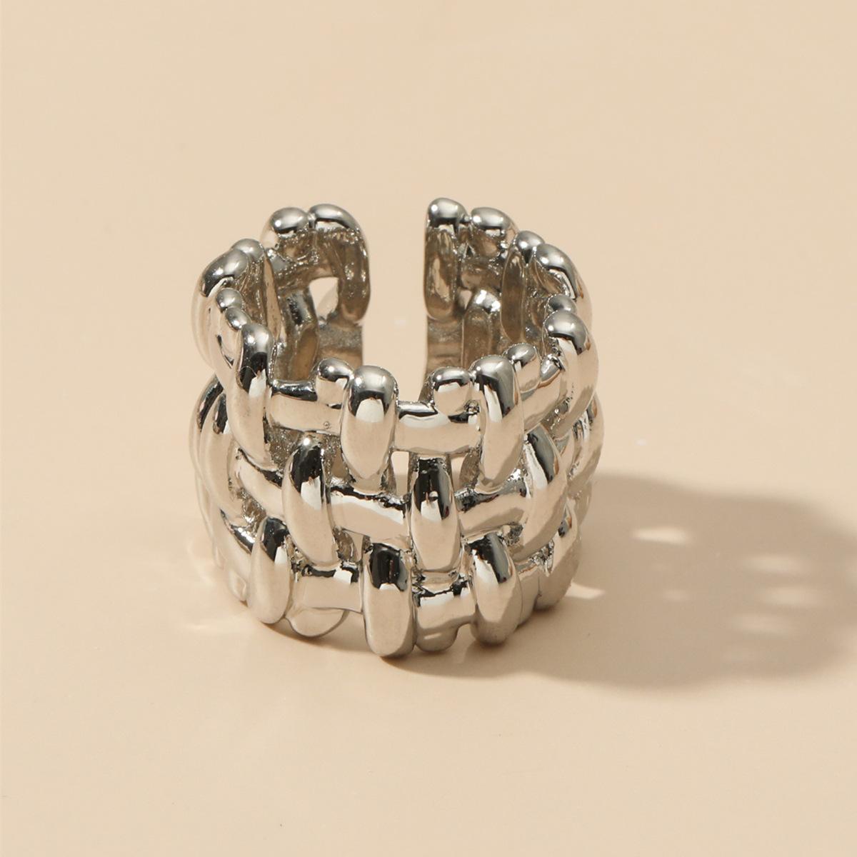 Модное преувеличенное плетеное кольцо-скелет, изысканное полированное модное дизайнерское кольцо, женское разомкнутое кольцо one size серебряный