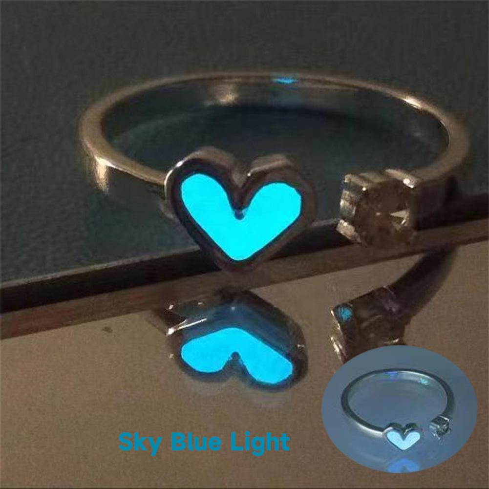 Модное светящееся кольцо в форме сердца для женщин и девочек, ретро-синие флуоресцентные регулируемые открытые кольца, ювелирный подарок Men