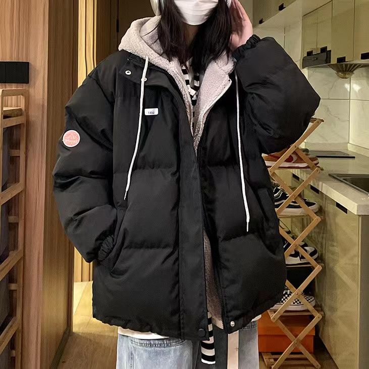 Модное хлопковое пальто средней длины с капюшоном, женское утепленное с цветными блоками, новый зимний стиль для студентов, теплая куртка M чёрный