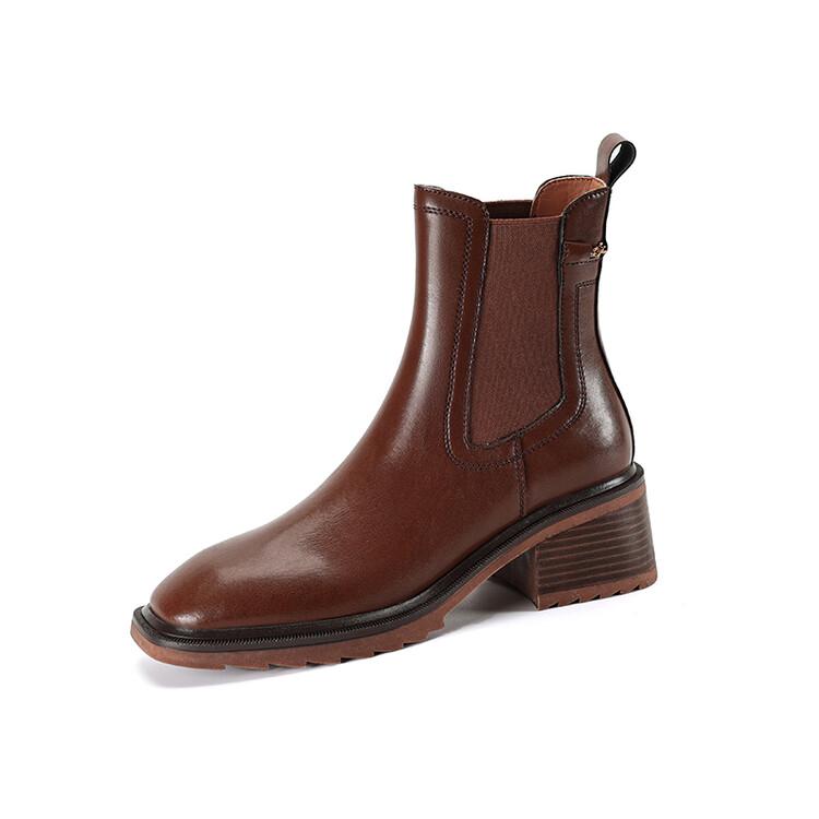 Модные НОВЫЕ Осенние Ботинки Женские Туфли из Спилка Женские Квадратный Носок Массивный Каблук Обувь Повседневные Слипоны Короткие Ботинки Ретро Черные Ботинки 38 коричневый