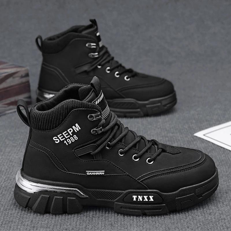 Модные ботильоны, мужские кроссовки, обувь для мужчин, уличные ботинки, мокасины, мужские кроссовки, спортивная и досуговая обувь для мужчин, нескользящая, с круглым носком 44 чёрный